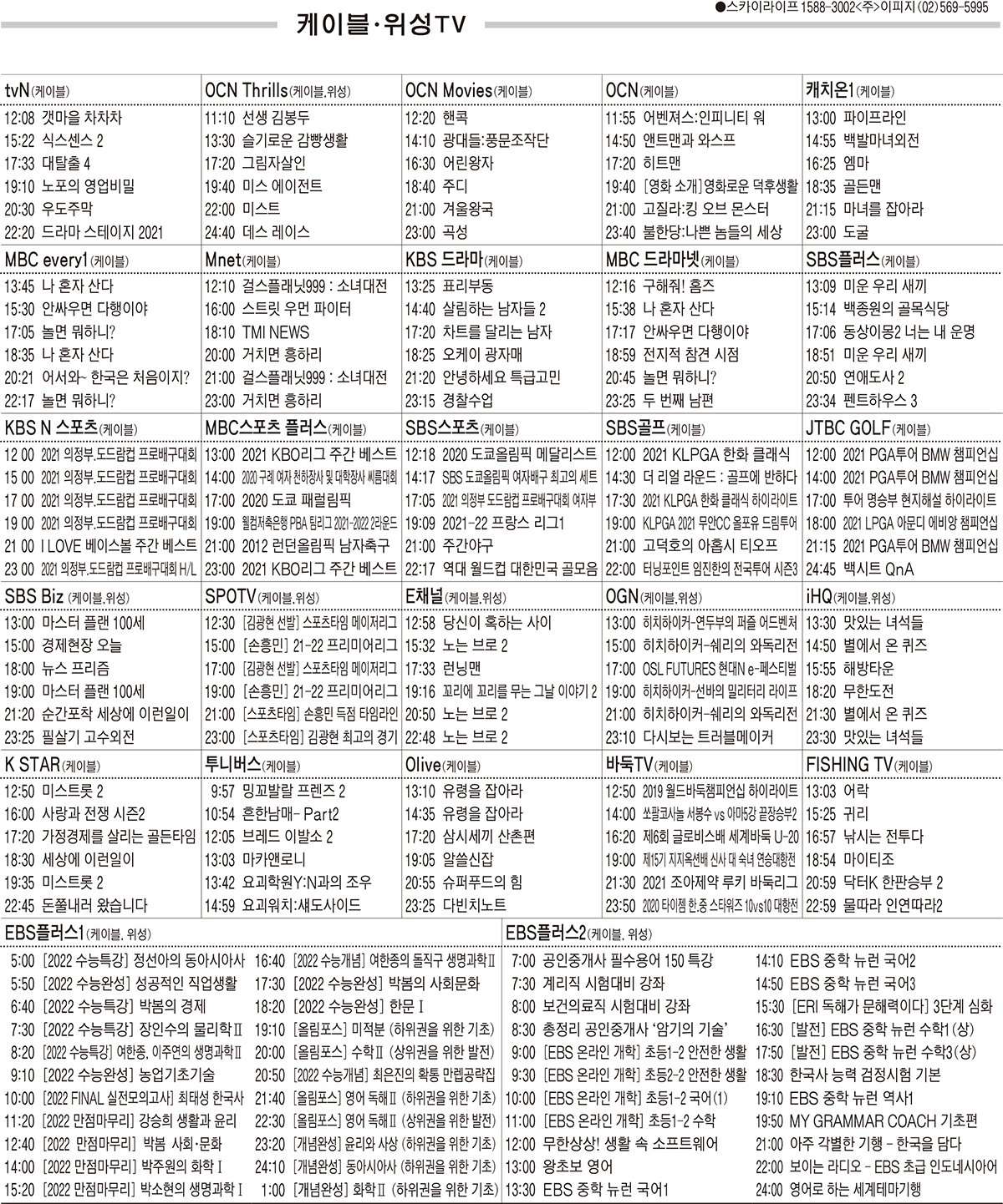 카카오톡 페이스북 트위터 전체 네이버밴드 네이버블로그 8월30일(월) 케이블·위성TV 편성표 박성희 기사 전체보기 영남일보(www.yeongnam.com), 무단전재 및 수집, 재배포금지 연예인기뉴스