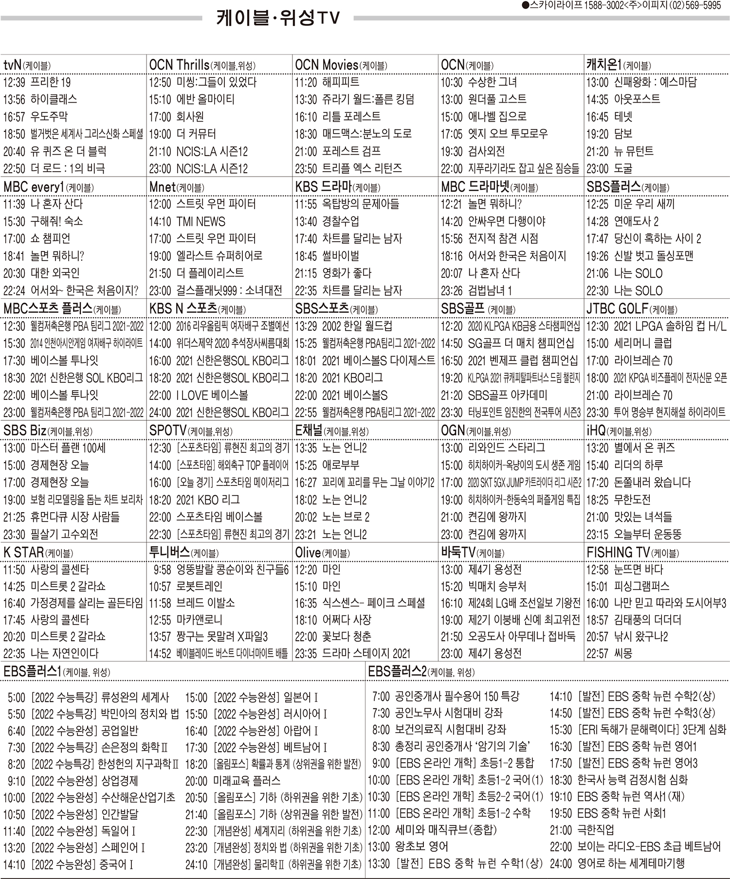 카카오톡 페이스북 트위터 전체 네이버밴드 네이버블로그 9월8일(수) 케이블·위성TV 편성표 박성희 기사 전체보기 영남일보(www.yeongnam.com), 무단전재 및 수집, 재배포금지 연예인기뉴스