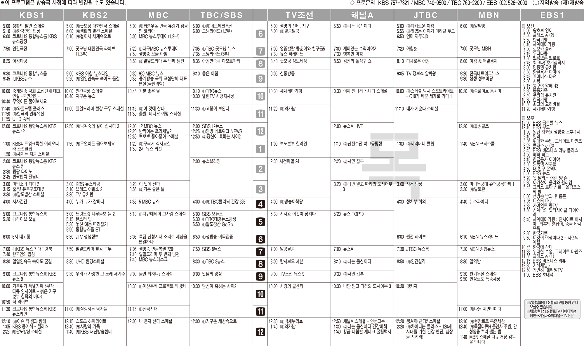 카카오톡 페이스북 트위터 전체 네이버밴드 네이버블로그 9월9일(목) TV 편성표 박성희 기사 전체보기 영남일보(www.yeongnam.com), 무단전재 및 수집, 재배포금지 연예인기뉴스