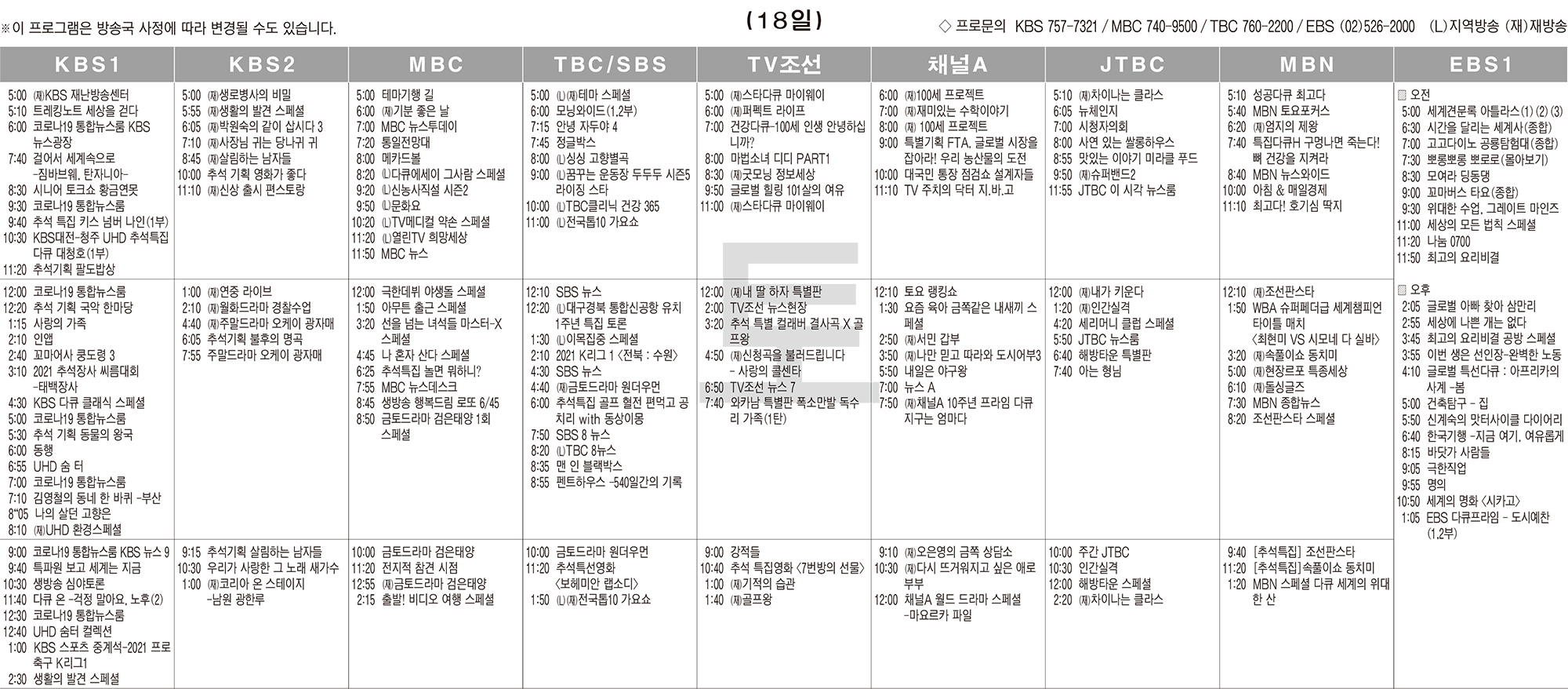 카카오톡 페이스북 트위터 전체 네이버밴드 네이버블로그 9월18일(토) TV 편성표 박성희 기사 전체보기 영남일보(www.yeongnam.com), 무단전재 및 수집, 재배포금지 연예인기뉴스