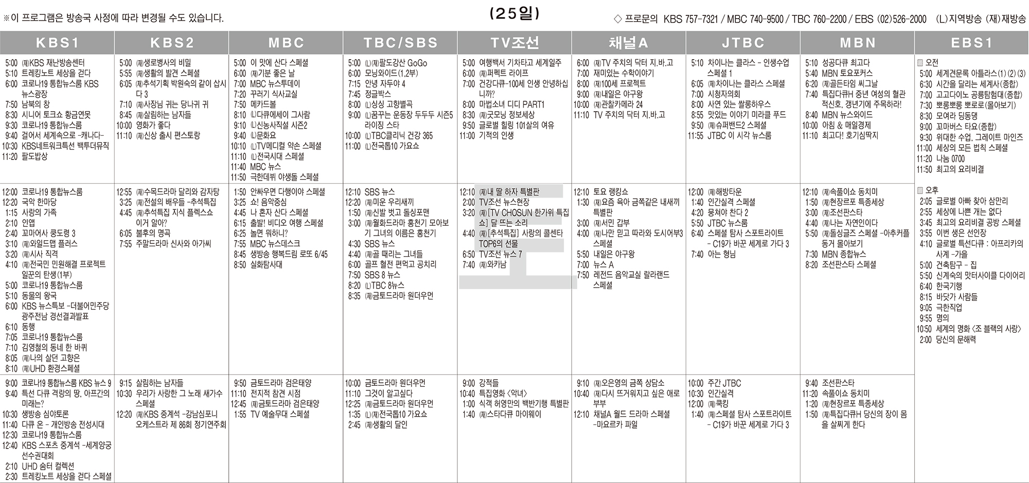 카카오톡 페이스북 트위터 전체 네이버밴드 네이버블로그 9월25일(토) TV 편성표 박성희 기사 전체보기 영남일보(www.yeongnam.com), 무단전재 및 수집, 재배포금지 연예인기뉴스