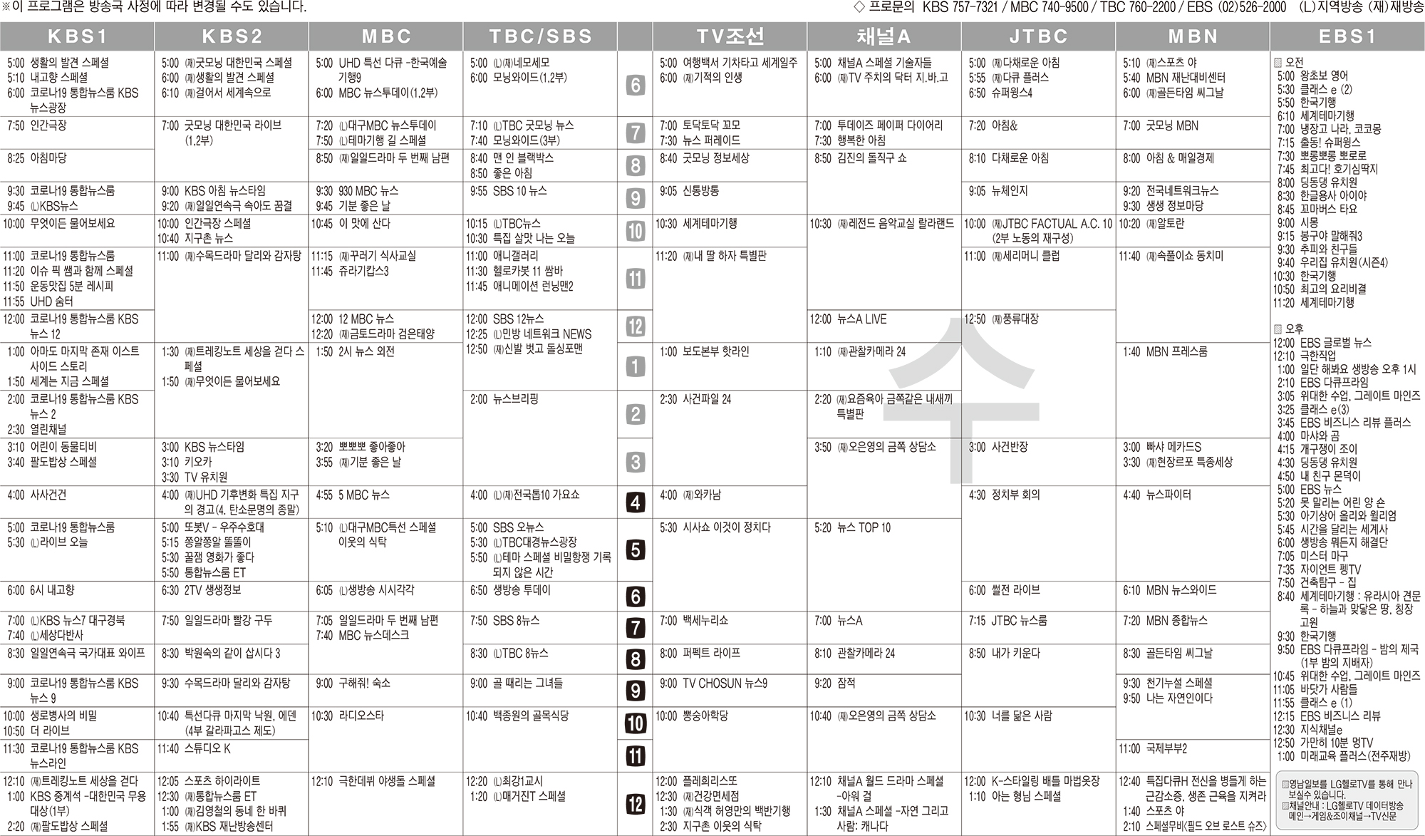 카카오톡 페이스북 트위터 전체 네이버밴드 네이버블로그 10월13일(수) TV 편성표 박성희 기사 전체보기 영남일보(www.yeongnam.com), 무단전재 및 수집, 재배포금지 연예인기뉴스