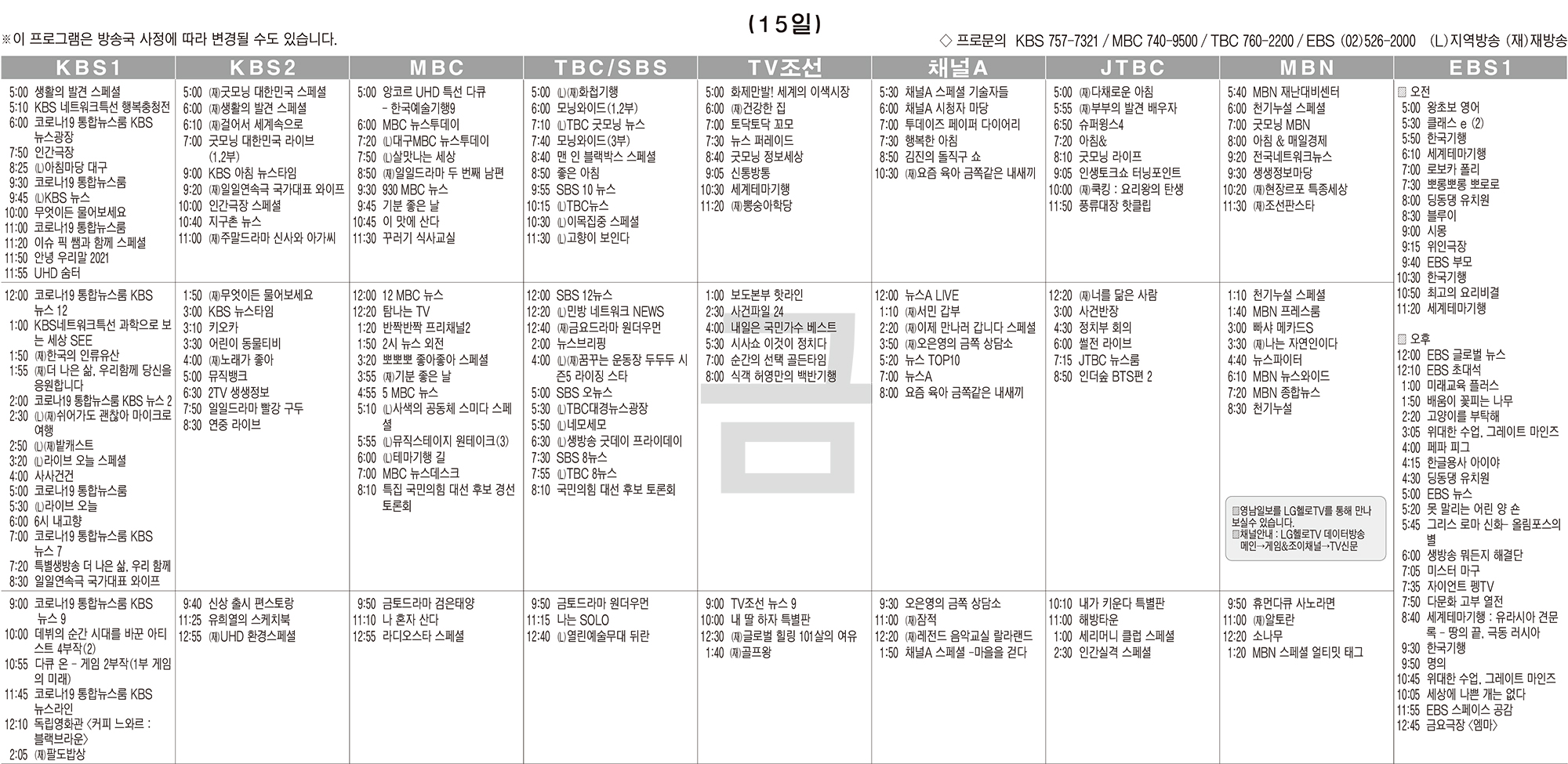 카카오톡 페이스북 트위터 전체 네이버밴드 네이버블로그 10월15일(금) TV 편성표 박성희 기사 전체보기 영남일보(www.yeongnam.com), 무단전재 및 수집, 재배포금지 연예인기뉴스