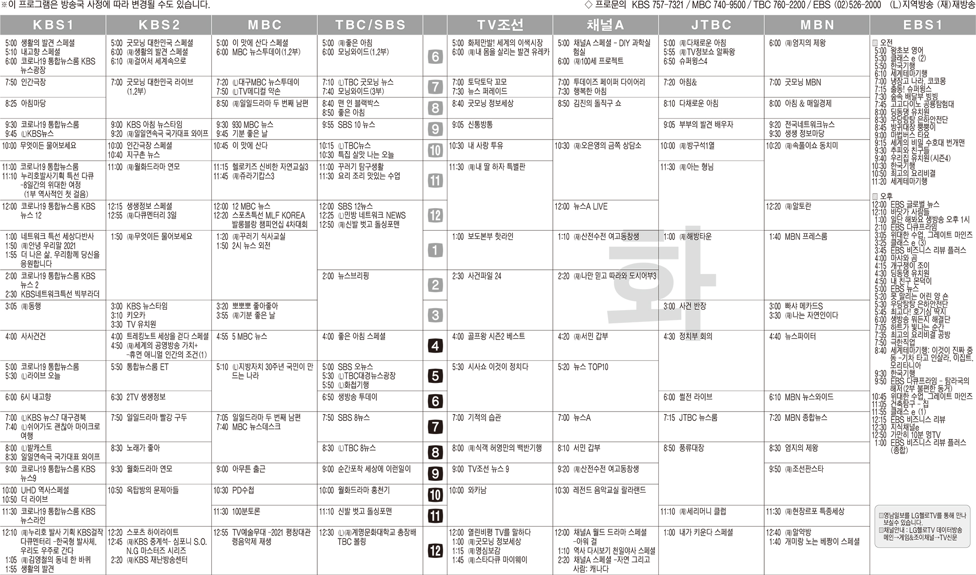 카카오톡 페이스북 트위터 전체 네이버밴드 네이버블로그 10월19일(화) TV 편성표 박성희 기사 전체보기 영남일보(www.yeongnam.com), 무단전재 및 수집, 재배포금지 연예인기뉴스