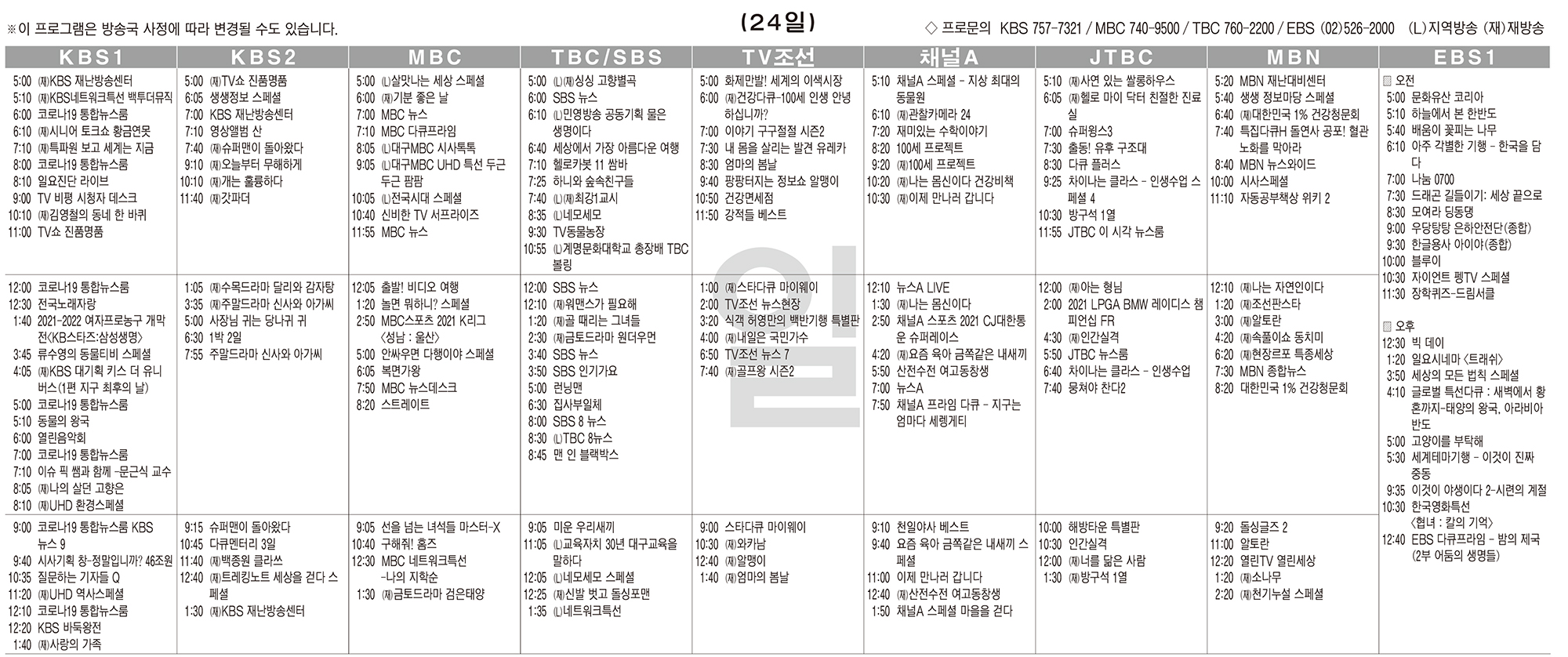 카카오톡 페이스북 트위터 전체 네이버밴드 네이버블로그 10월24일(일) TV 편성표 박성희 기사 전체보기 영남일보(www.yeongnam.com), 무단전재 및 수집, 재배포금지 연예인기뉴스