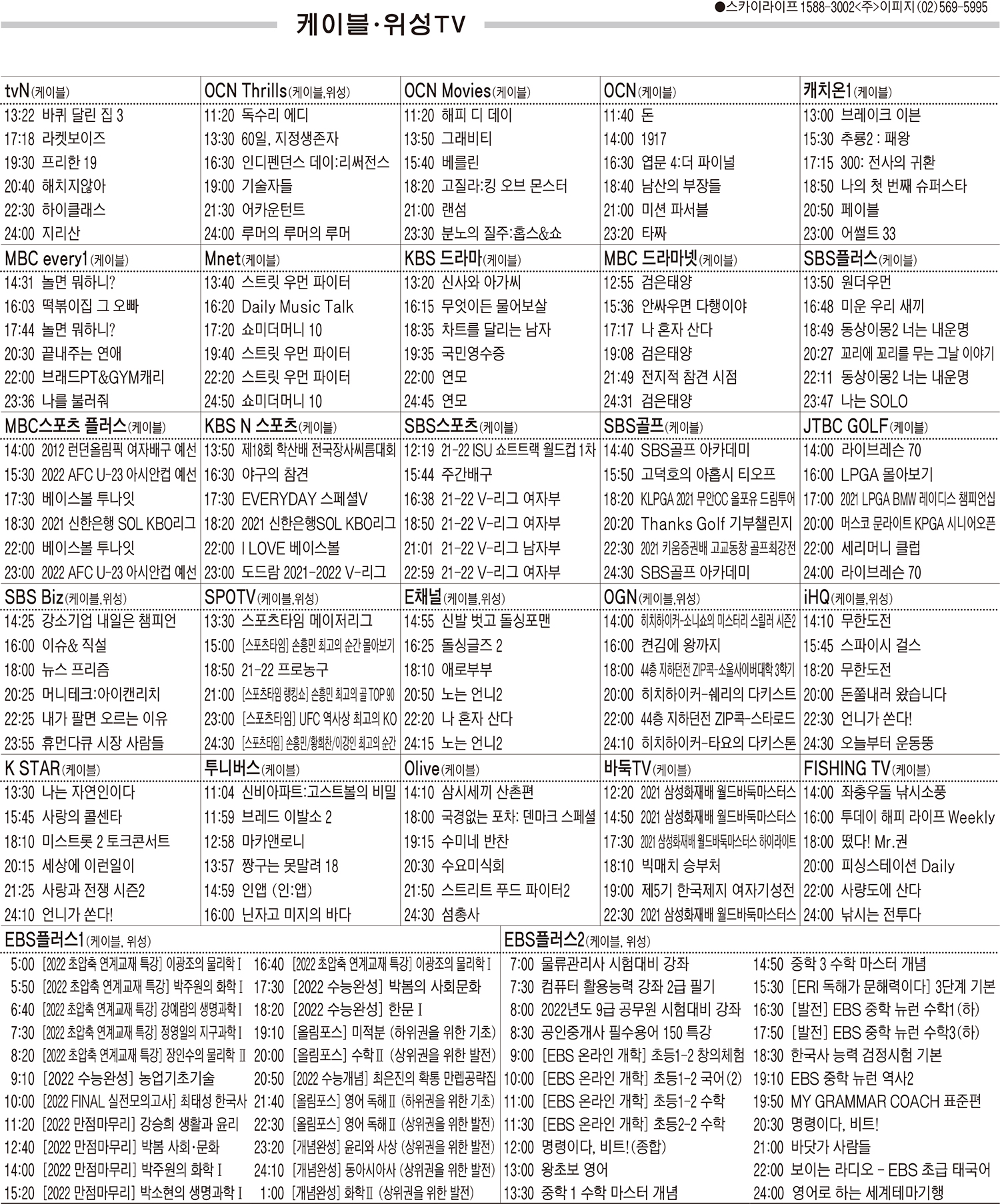 카카오톡 페이스북 트위터 전체 네이버밴드 네이버블로그 10월26일(화) 케이블·위성TV 편성표 박성희 기사 전체보기 영남일보(www.yeongnam.com), 무단전재 및 수집, 재배포금지 연예인기뉴스