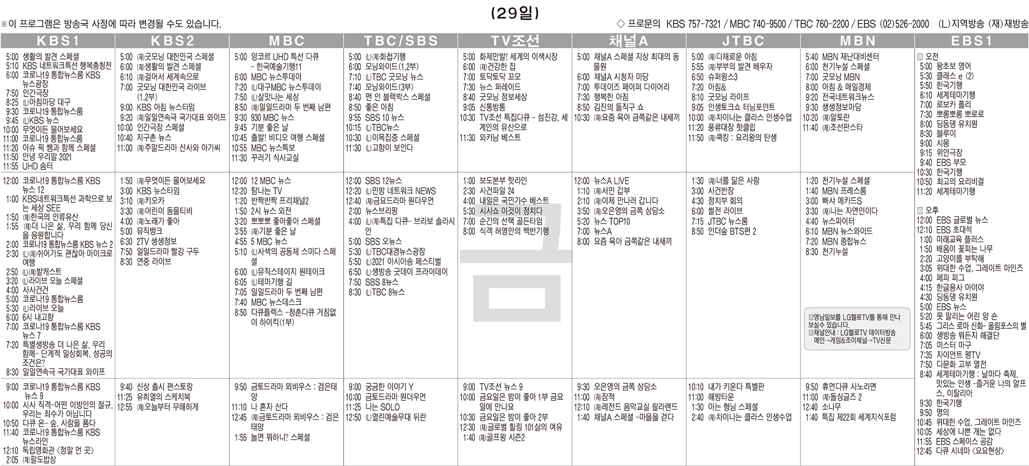 카카오톡 페이스북 트위터 전체 네이버밴드 네이버블로그 10월29일(금) TV 편성표 박성희 기사 전체보기 영남일보(www.yeongnam.com), 무단전재 및 수집, 재배포금지 연예인기뉴스
