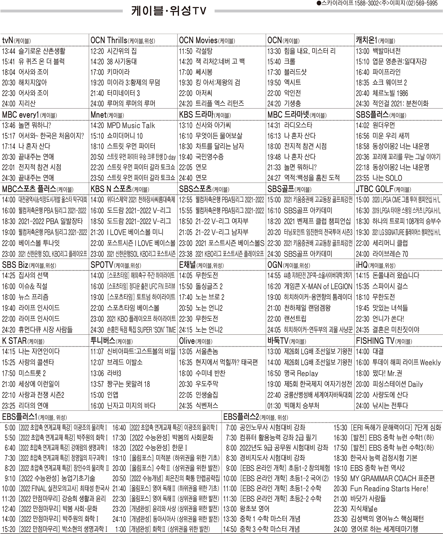카카오톡 페이스북 트위터 전체 네이버밴드 네이버블로그 11월9일(화) 케이블·위성TV 편성표 박성희 기사 전체보기 영남일보(www.yeongnam.com), 무단전재 및 수집, 재배포금지 연예인기뉴스