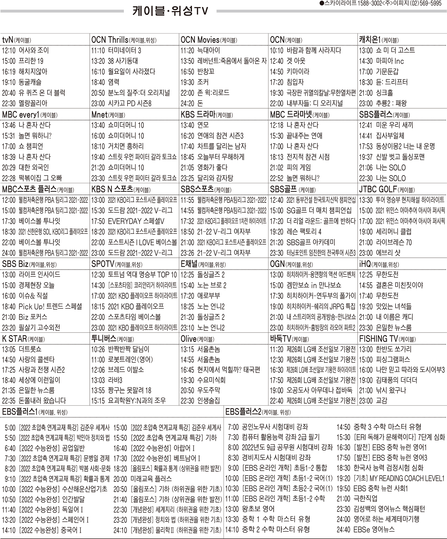 카카오톡 페이스북 트위터 전체 네이버밴드 네이버블로그 11월10일(수) 케이블·위성TV 편성표 박성희 기사 전체보기 영남일보(www.yeongnam.com), 무단전재 및 수집, 재배포금지 연예인기뉴스