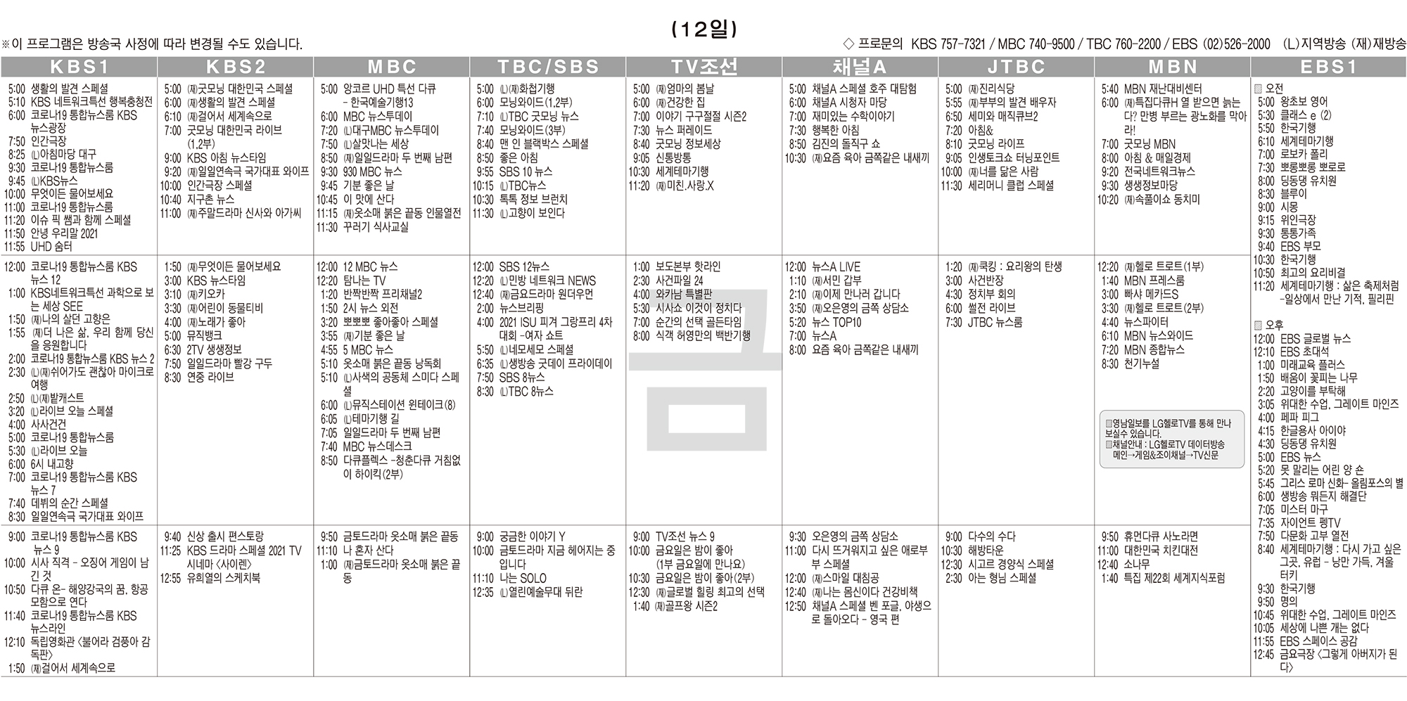 카카오톡 페이스북 트위터 전체 네이버밴드 네이버블로그 11월12일(금) TV 편성표 박성희 기사 전체보기 영남일보(www.yeongnam.com), 무단전재 및 수집, 재배포금지 연예인기뉴스