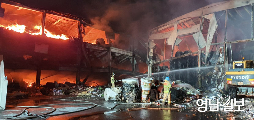 밤샘 진화작업에 순간 소방용수로 공단 내 공업용수와 광역 상수도 등을 끌어와 진화에 나서면서 한때 용수 부족에 따른 주민불편도 가중됐다.