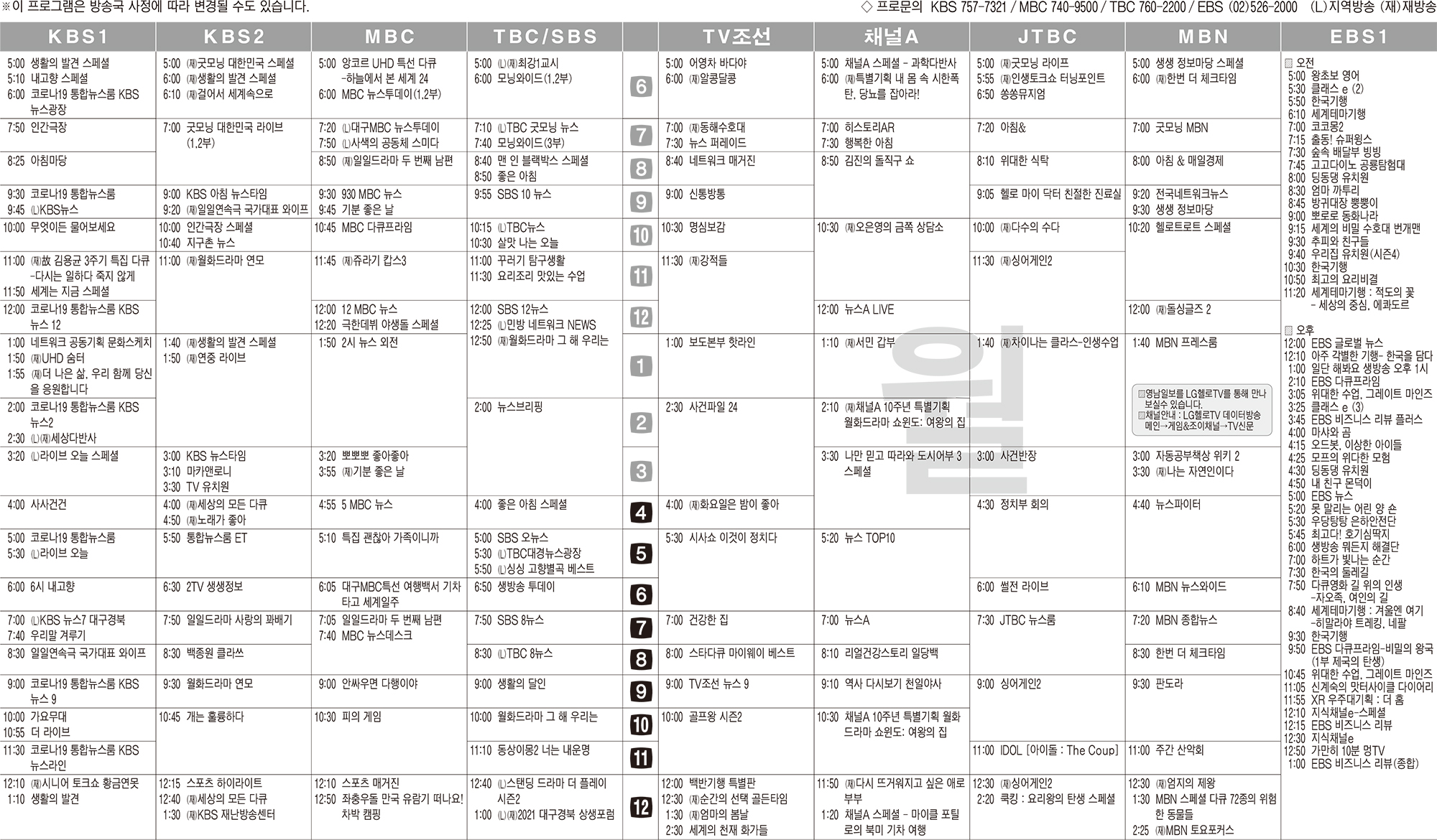 카카오톡 페이스북 트위터 전체 네이버밴드 네이버블로그 12월13일(월) TV 편성표 박성희 기사 전체보기 영남일보(www.yeongnam.com), 무단전재 및 수집, 재배포금지 연예인기뉴스