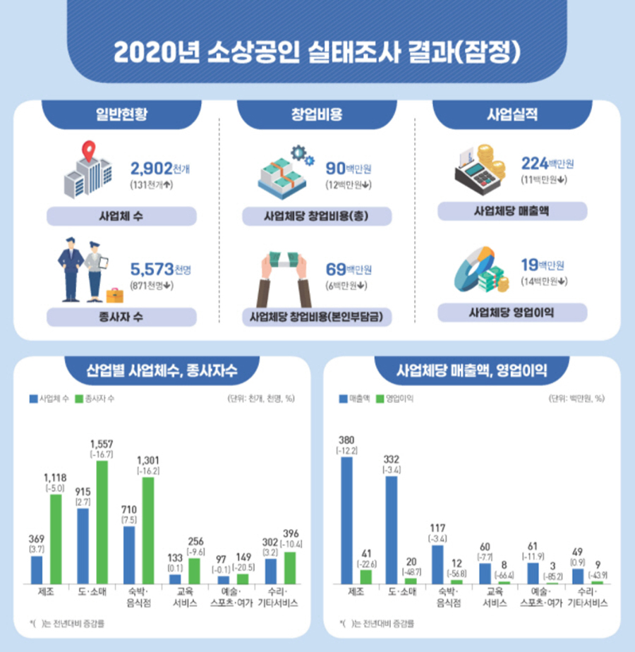중기부와 통계청이 해당 통계를 보유한 2018년 이후 종사자 수는 가장 작고 종사자 수 감소 폭은 가장 컸다.