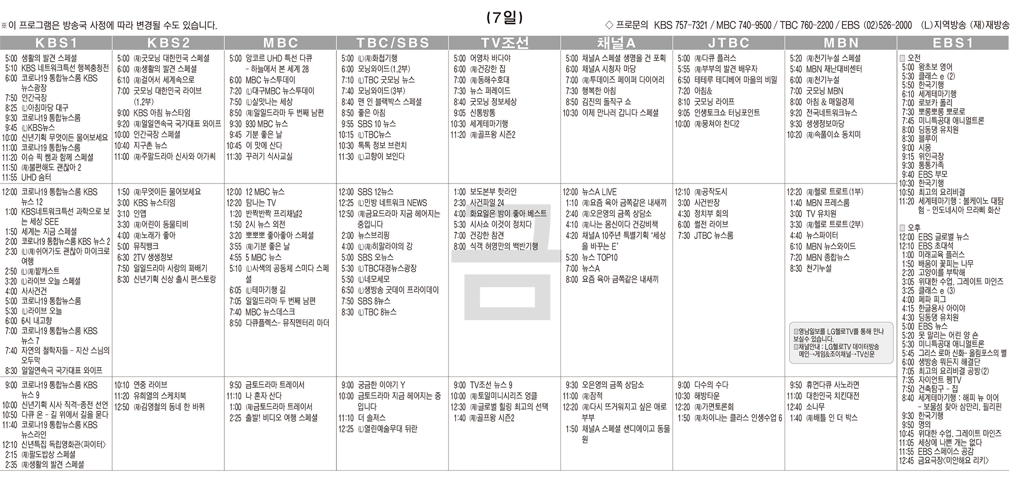 카카오톡 페이스북 트위터 전체 네이버밴드 네이버블로그 1월7일(금) TV 편성표 박성희 기사 전체보기 영남일보(www.yeongnam.com), 무단전재 및 수집, 재배포금지 연예인기뉴스
