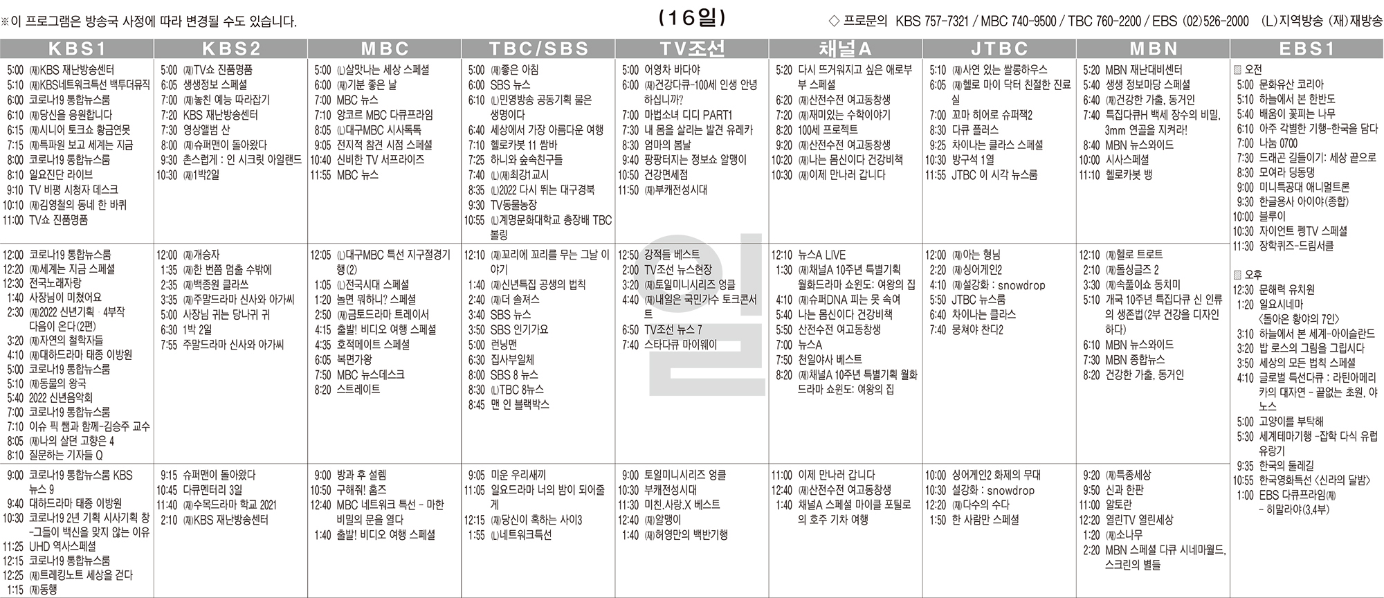 카카오톡 페이스북 트위터 전체 네이버밴드 네이버블로그 1월16일(일) TV 편성표 박성희 기사 전체보기 영남일보(www.yeongnam.com), 무단전재 및 수집, 재배포금지 연예인기뉴스