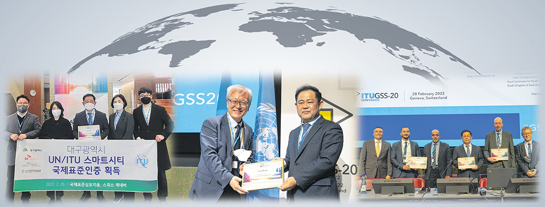 대구시는 다양한 방식으로 스마트시티 표준과 어워드에 참여하며 도시 브랜드를 높여가고 있다. 먼저 국토부가 주관하는 스마트시티 인증제에서 2021년 9월 국내 1호 인증도시가 되었다. 이보다 앞서 2020년 1월에는 국제 표준화 기구인 ISO로부터 스마트시티 인증을 받았다. ISO 표준에서 대구시는 스마트시티 인프라 관리, 정보통신, 데이터에 대한 투자, 도시간 협업 등에서 4레벨을 획득해 다른 스마트시티보다 운영체계와 인프라에서 앞선 점을 인정받았다. 여기에 한발 더 나아가 지난 월요일(2월28일) 스위스 제네바에서 열린 ITU-T 국제표준화 심포지엄(GSS20)에 정해용 대구시 경제부시장이 참석해 스마트시티 표준 도시 가입 승인서를 받았다. 이로써 대구는 ISO와 ITU-T 스마트시티 표준화에 참여하는 국내 최초도시이자 세계에서 4번째로 사례 도시가 된다.