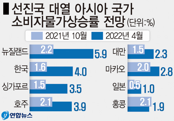 IMF도 올해 한국의 소비자물가 전망치를 지난달보다 0.9%포인트 높인 4.0%대로 수정했다.