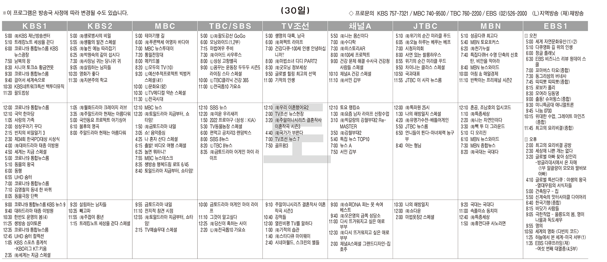 카카오톡 페이스북 트위터 전체 네이버밴드 네이버블로그 4월30일(토) TV 편성표 박성희 기사 전체보기 영남일보(www.yeongnam.com), 무단전재 및 수집, 재배포금지 연예인기뉴스