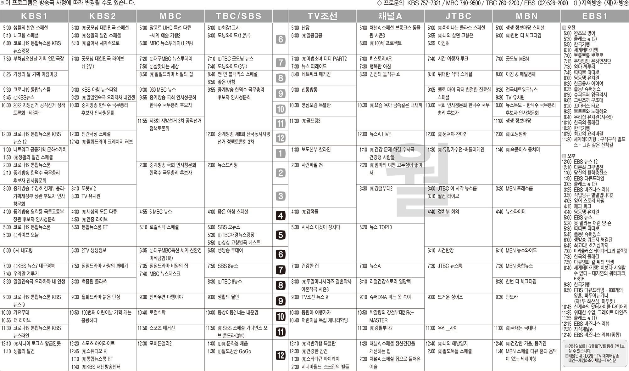 카카오톡 페이스북 트위터 전체 네이버밴드 네이버블로그 5월2일(월) TV 편성표 박성희 기사 전체보기 영남일보(www.yeongnam.com), 무단전재 및 수집, 재배포금지 연예인기뉴스