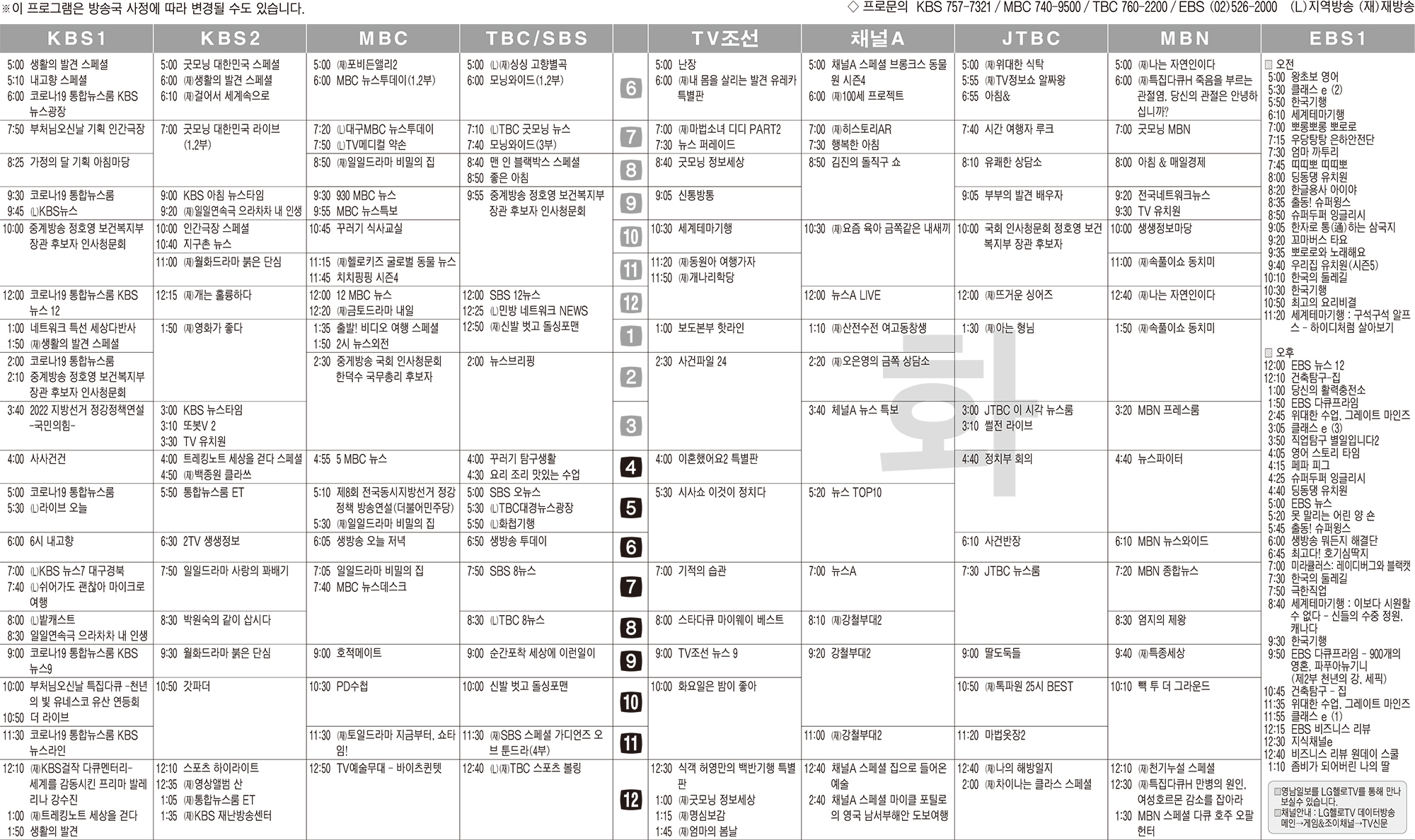 카카오톡 페이스북 트위터 전체 네이버밴드 네이버블로그 5월3일(화) TV 편성표 박성희 기사 전체보기 영남일보(www.yeongnam.com), 무단전재 및 수집, 재배포금지 연예인기뉴스