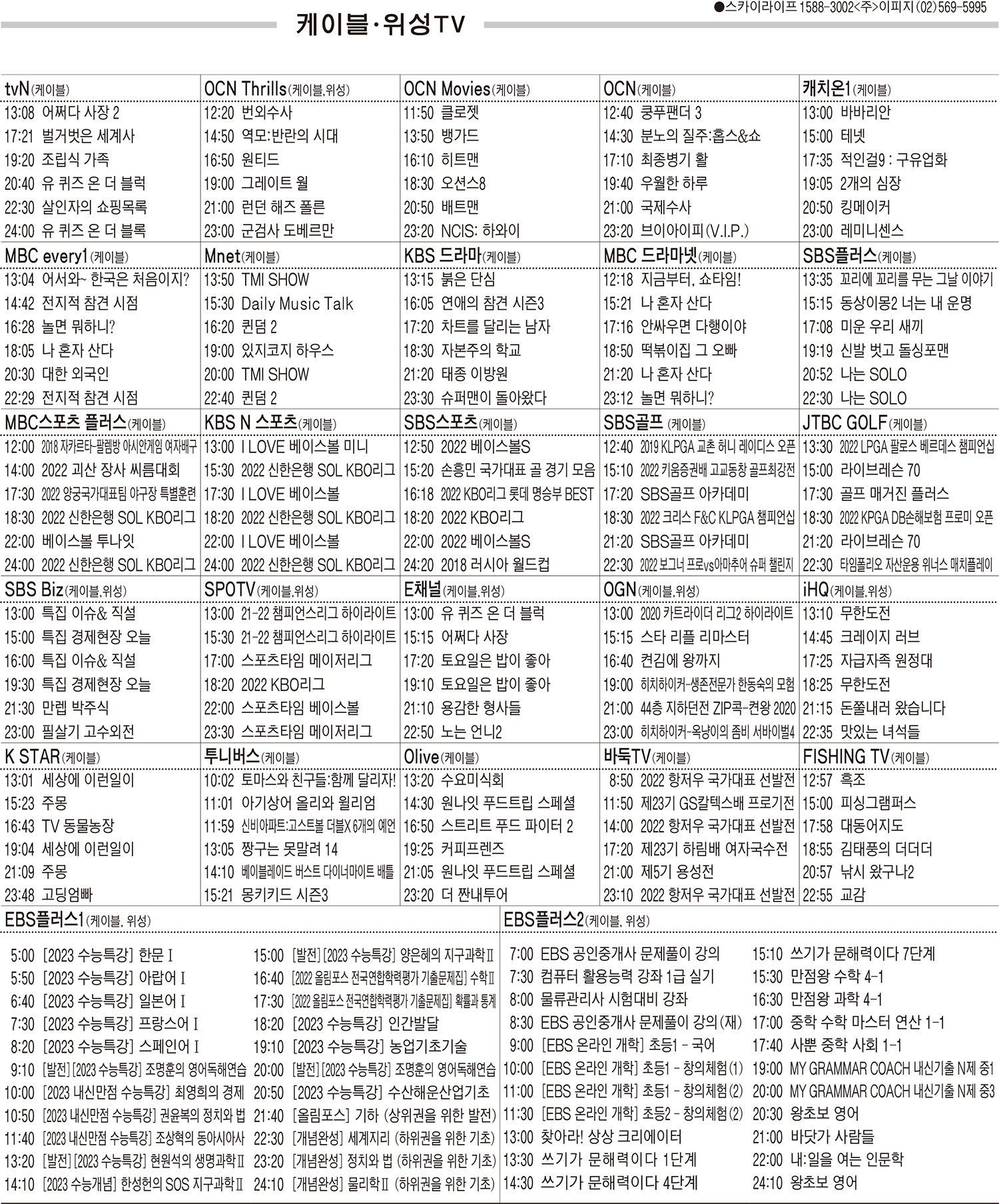 카카오톡 페이스북 트위터 전체 네이버밴드 네이버블로그 5월4일(수) 케이블·위성TV 편성표 박성희 기사 전체보기 영남일보(www.yeongnam.com), 무단전재 및 수집, 재배포금지 연예인기뉴스