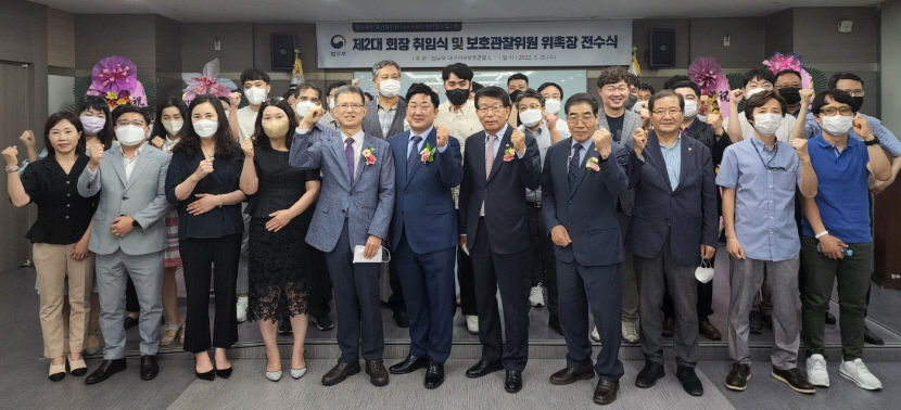 | 전해진 대구서부보호관찰소 협의회장 취임식 및 장학금 전달식이 끝난 뒤 참석자들이 기념촬영을 하고 있다. |