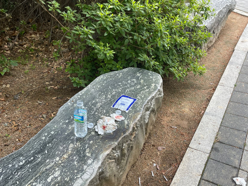 | 대구 범어동 화재 발생 당시 현장을 탈출한 시민이 상처를 소독한 흔적. 이남영 기자 |