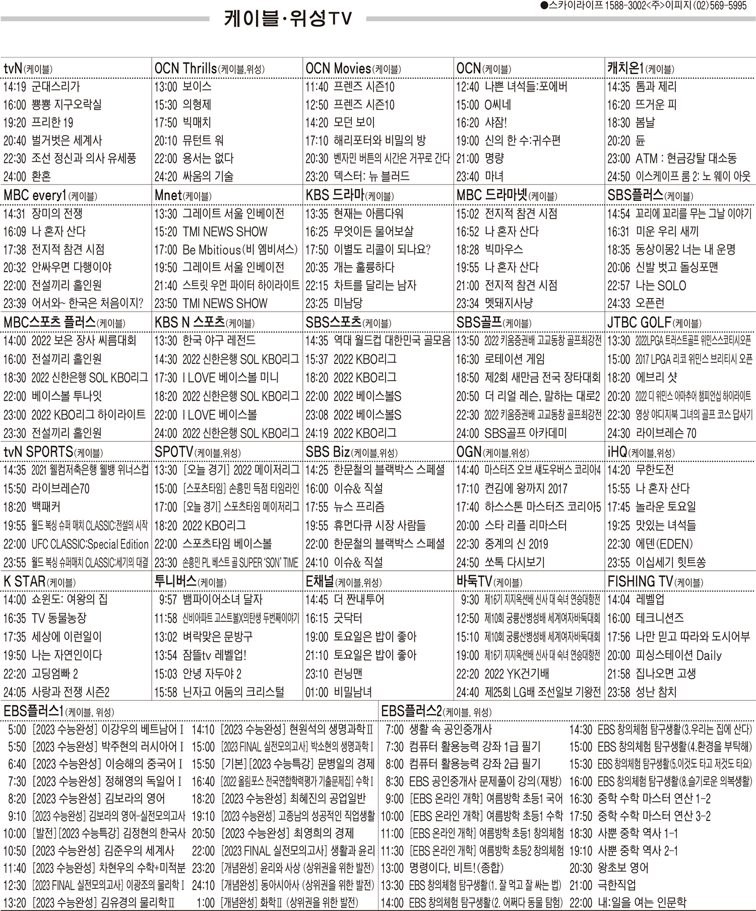 카카오톡 페이스북 트위터 전체 네이버밴드 네이버블로그 8월2일(화) 케이블·위성TV 편성표 박성희 기사 전체보기 영남일보(www.yeongnam.com), 무단전재 및 수집, 재배포금지 연예인기뉴스