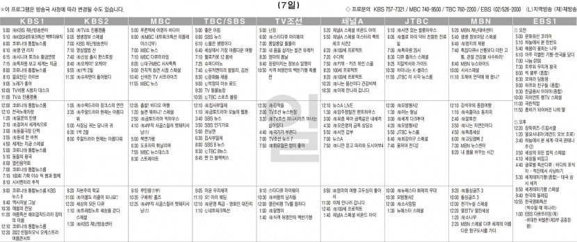 카카오톡 페이스북 트위터 전체 네이버밴드 네이버블로그 8월7일(일) TV 편성표 박성희 기사 전체보기 영남일보(www.yeongnam.com), 무단전재 및 수집, 재배포금지 연예인기뉴스