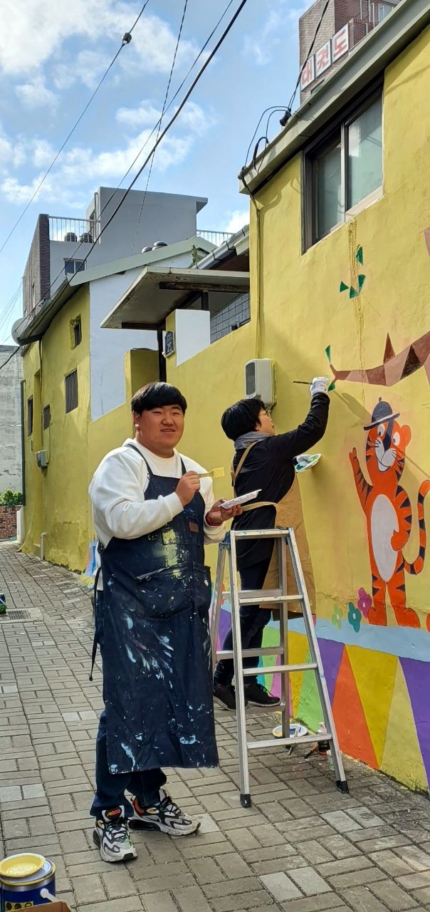 | 청년마을미디어 활동가로 활약 중인 이동민 씨가 대구 서구 비산1동의 한 주택가에 벽화를 그리고 있다. 이동민씨 제공 |