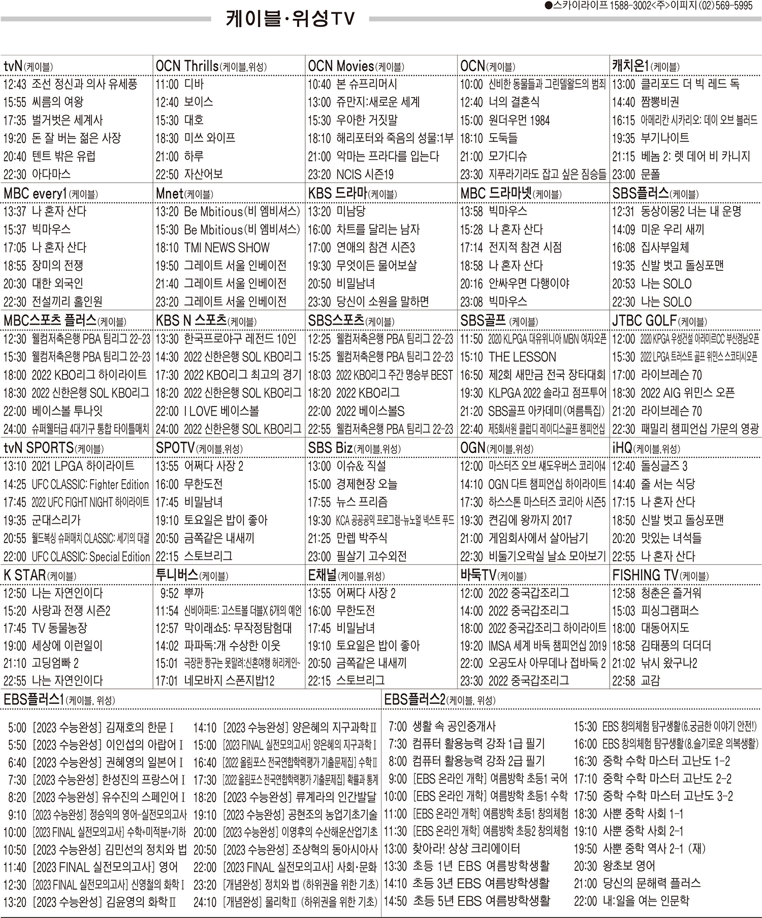 카카오톡 페이스북 트위터 전체 네이버밴드 네이버블로그 8월10일(수) 케이블·위성TV 편성표 박성희 기사 전체보기 영남일보(www.yeongnam.com), 무단전재 및 수집, 재배포금지 연예인기뉴스