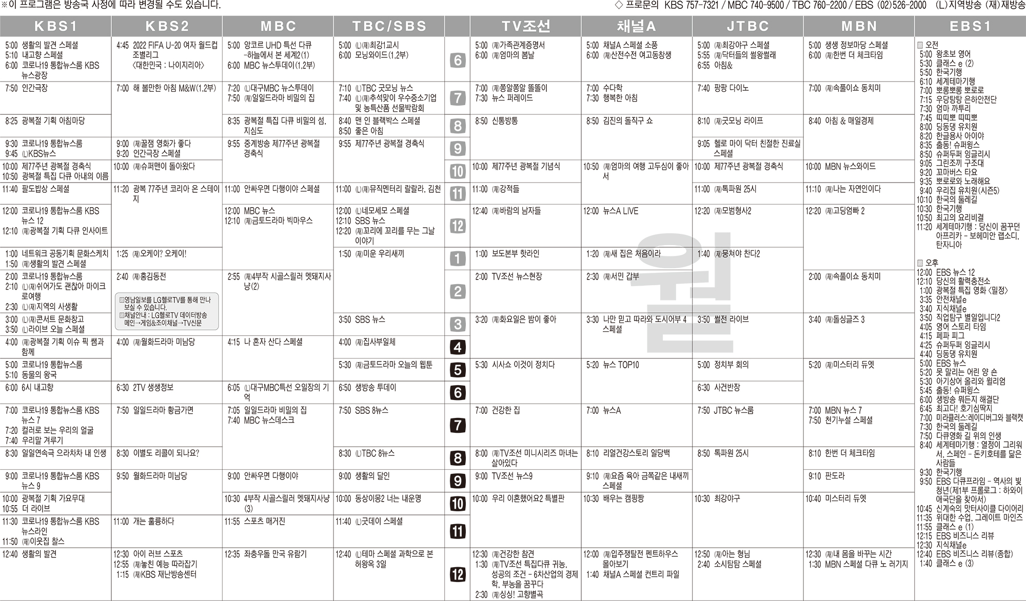 카카오톡 페이스북 트위터 전체 네이버밴드 네이버블로그 8월15일(월) TV 편성표 박성희 기사 전체보기 영남일보(www.yeongnam.com), 무단전재 및 수집, 재배포금지 연예인기뉴스