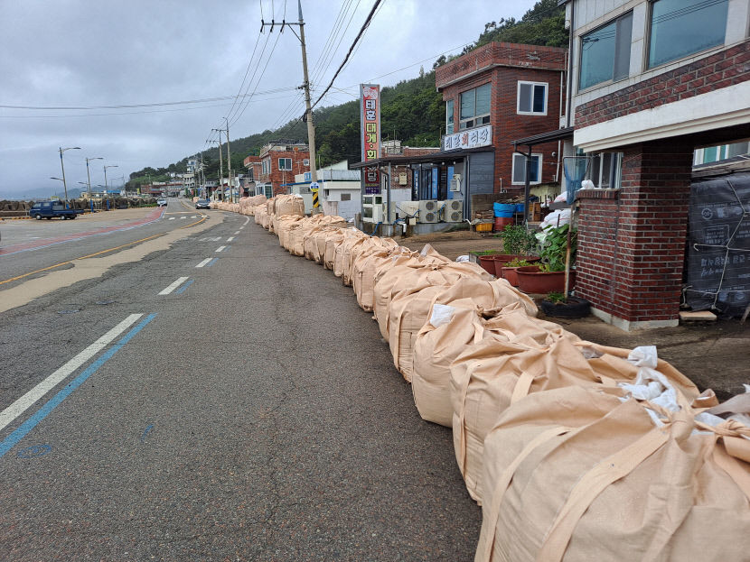 앞서 영덕군은 5일 태풍 대비를 위해 해안가와 저지대 주민 500여 명을 안전한 곳으로 미리 대피시키면서 침수가 예상되는 해안가, 하천 주변 등 군내 곳곳에 대형자루 마대를 이용해 물막이 벽을 설치했다.