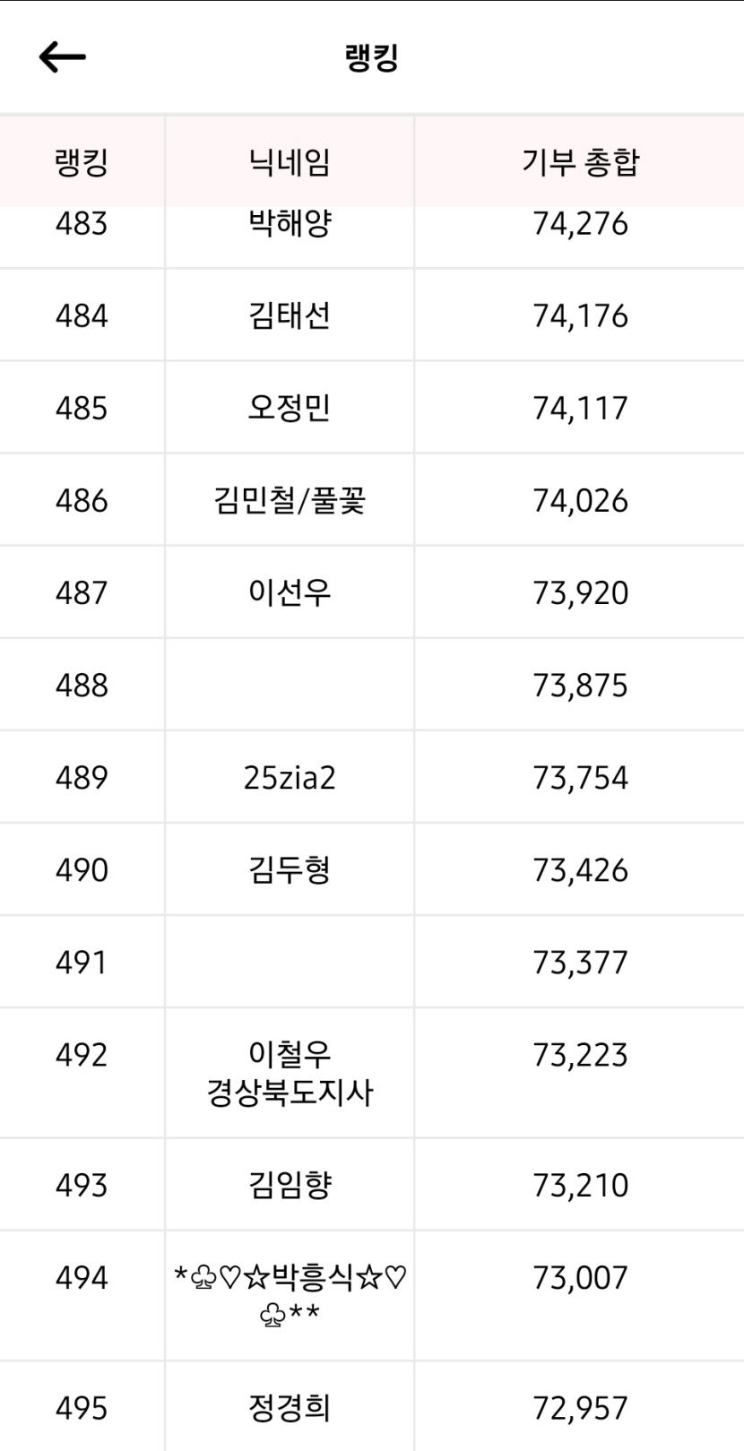 이철우 경북도지사는 7만3천223보를 기부해 492위에 이름을 올렸다. 평소 출근 전이나 퇴근 후 도청 앞 황톳길을 자주 찾는 등 '걷기 예찬론자'인 이 도지사는 도정 활동 중에도 틈틈이 걸음 기부내역과 순위를 확인하는 등 뚜벅이앱에 깊은 관심을 보이고 있다.