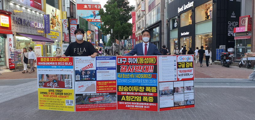 | 대구경북다음세대지키기학부모연합 회원들이 오는 10월1일 대구 중구 동성로에서 열리는 '제14회 대구 퀴어 문화축제'에 반대하는 1인 릴레이 시위를 벌이고 있다, <대구경북다음세대지키기학부모연합 제공> |