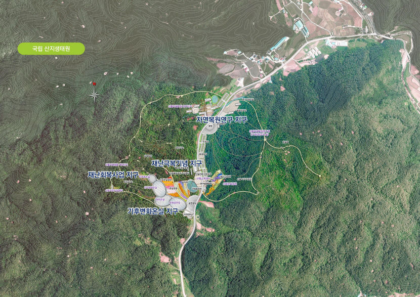 402억원 규모로 2027년까지 울진 북면에 건립될 예정인 국립산지생태원은 산림 생태 복원 과정 연구·체험 등이 가능한 시설이다.