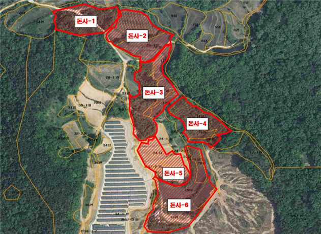 | 구미시와 경게지점인 의성군 단밀면 낙정리에 신축 예정인 돈사 6곳 위치도.도개면 주민 대표 제공 |