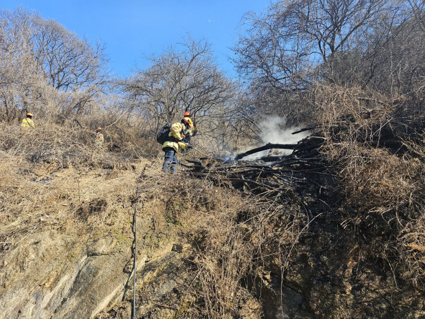 소방 당국은 "산에 불이 났다는 신고를 받고 출동했다"며 "과수원에서 농부산물 소각 중 산으로 번진 것으로 보고 있다"고 밝혔다.