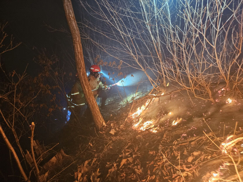 경북소방본부에 따르면, 이날 오후 8시 7분쯤 경북 봉화군 소천면 남회룡리 야산 1부 능선 부근에서 불이 났다. 불은 삽시간에 퍼져 4부 능선까지 번진 상태다.