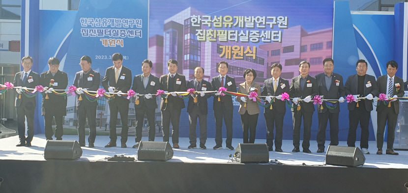 경북도는 16일 영천시 천문로에서 한국섬유개발연구원 집진필터실증센터 개원식을 갖고 지역 섬유산업의 사업 확장을 기념했다. 이날 개원식에는 최기문 영천시장, 이영석 경북도 경제산업국장, 이춘우·윤승오 경북도의원, 신현부 한국섬유개발연구원 이사장을 비롯한 지역 섬유 관련 기관 단체장 및 기업 대표 등 100여명이 참석했다.