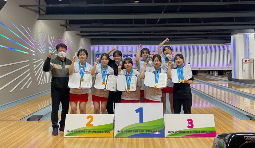 | 대한볼링협회장배 전국남녀종별 볼링선수권 대회에 출전, 금메달 4개와 은메달 3개·동메달2개를 획득하며 종합 우승을 차지한 경북대 볼링팀(좌측부터 감독 김상국, 선수 최지은·김지은,전가현·최윤서·오한희·남다민·김다영·김유진) |