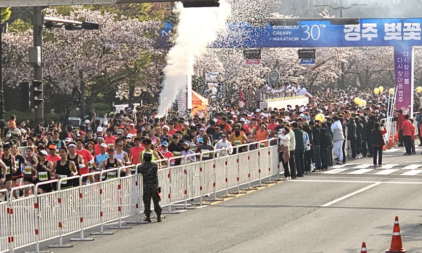 | 제30회 경주벚꽃마라톤대회 하프 코스 출발 모습. |
