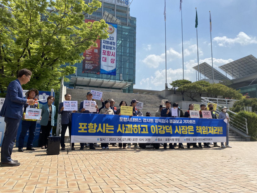 이들 단체는 "부당한 지시로 시민의 세금을 불법적으로 지원한 포항시장과 보조금을 부당하게 청구한 시내버스 운영사 대표를 비롯해 이번 불법·특혜 및 보조금 부당청구의 책임자들이 진실을 밝히고, 시민에게 머리 숙여 사과해야 한다"고 주장했다.