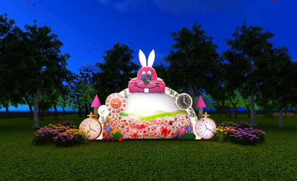 | 재문화엑스포가 봄 시즌 이벤트로 동화 속 세계 '빛과 환상의 나라 원더랜드'를 선보인다. 사진은 원더랜드의 흰 토끼 환영 인사 존. 문화엑스포 제공 |