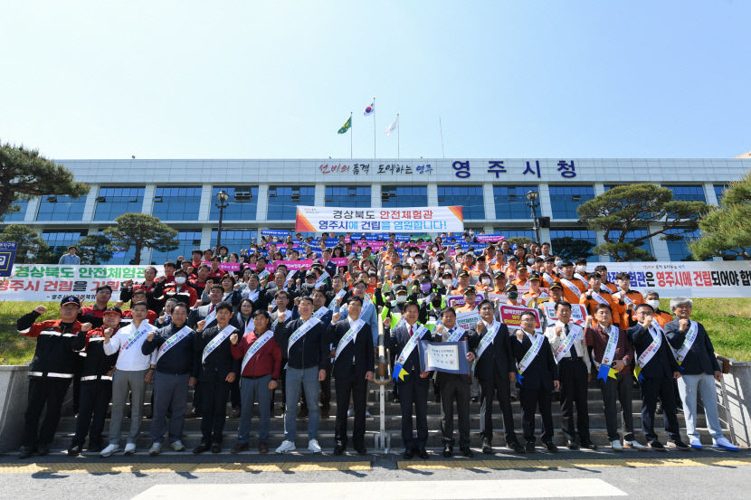 경북 영주시가 1일 경북안전체험관 유치를 위한 유치신청서와 시민 염원이 담긴 '서명운동 서명부'를 경북도에 전달했다. 전달에 앞서 시는 이날 오전 시청 앞마당에서 낙후된 경북 북부지역 상생 발전의 계기가 될 경북안전체험관 영주 유치신청 출정식을 열었다.