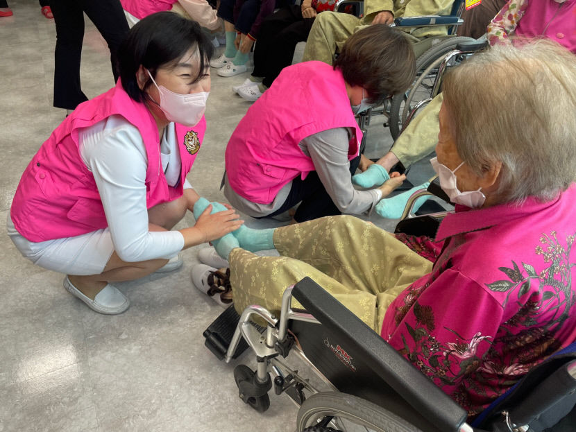 간호사들은 지역 어르신에게 민트색 마스크, 양말, 헤어핀, 간식을 전달하는 등 돌봄의 시간을 가졌다.
