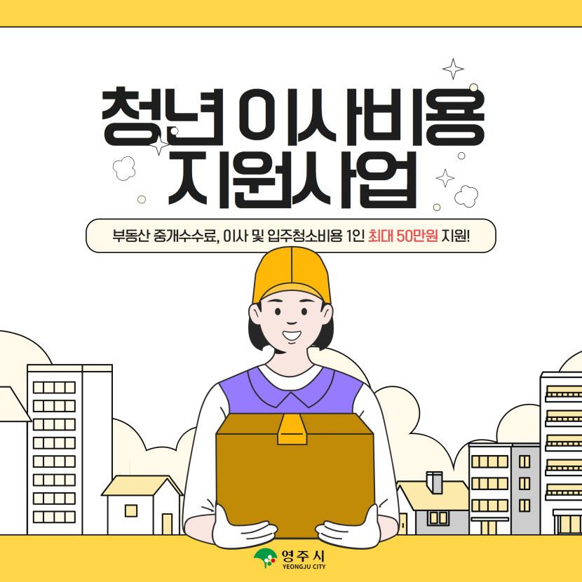 11일 영주시에 따르면 이사비용은 이삿짐 운반·포장비뿐만 아니라 부동산 중개수수료, 입주청소비 등 이사에 들어가는 모든 실비다. 지원 금액은 한 가구당 최대 50만 원이다.
