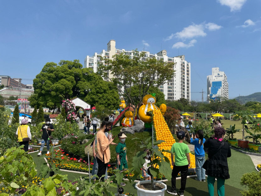 특히 참외가 쏟아지는 폭포는 단연 인기다. 이외에도 대형참외박스 포토존, 대형 참외 열기구 포토존, 대형 꽃 포토존 등 시각적인 재미를 더하고 있어 가족 단위 관광객들의 이목을 집중시키고 있다.