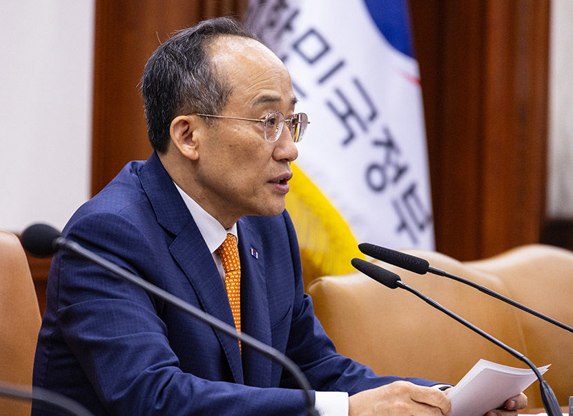 | 추경호 경제부총리 겸 기획재정부 장관이 21일 오전 서울 종로구 정부서울청사에서 열린 비상경제장관회의 겸 수출투자대책회의에 참석해 회의 의제를 설명하고 있다. 연합뉴스 |