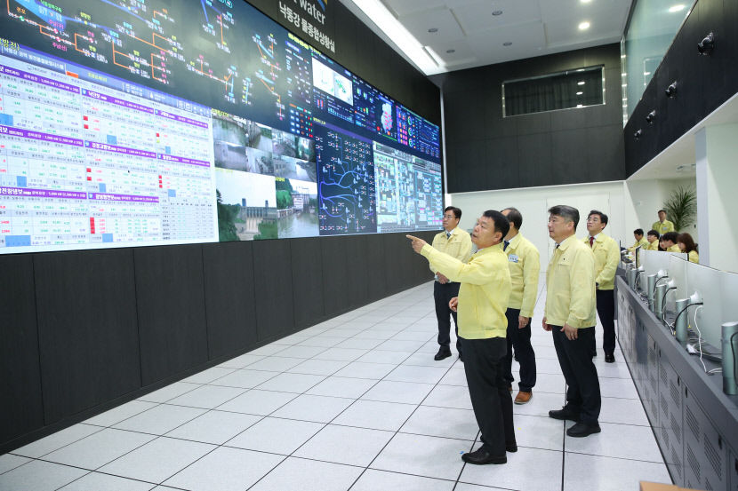 | 윤석대 한국수자원공사 사장은 4일 대구 낙동강유역본부 물종합상황실을 찾아 물 재해 예방에 적극 나서줄 것을 주문했다. 한국수자원공사 제공 |
